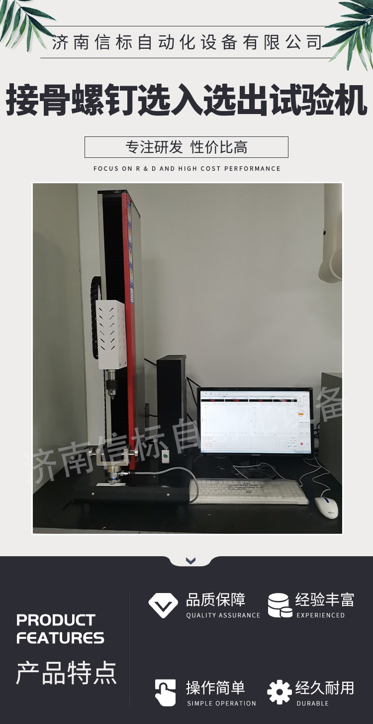濟南信標自動化設備有限公司主要生產:動靜態萬能疲勞試驗機,接骨板彎曲試驗機,縫合線拉伸疲勞試驗機,髖膝關節磨損試驗機,電子萬能試驗機、液壓萬能試驗機、巖石三軸、四軸,電液拉力試驗機,材料試驗機,高低溫蠕變,高低頻疲勞,拉伸、扭轉、杯突等二十多個系列兩千多個的品種。