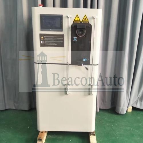 GWQ-90 電線電纜90度折彎試驗(yàn)機(jī) 1.用途: GWQ-90 光纜反復(fù)彎曲試驗(yàn)機(jī) 電線電纜90度折彎試驗(yàn)機(jī)適用于測(cè)試光纜承受反復(fù)彎曲的能力,通過(guò)施加反復(fù)彎曲力,對(duì)于合格的光纜要求光纖 不斷裂,光纖的衰減變化不超過(guò)光纜產(chǎn)品詳細(xì)規(guī)范中規(guī)定的值,光纜護(hù)套不開(kāi)裂。 2.電線電纜90度折彎試驗(yàn)機(jī)特點(diǎn): 本設(shè)備采用人機(jī)界面與PLC 控制,TFT 真彩屏顯示測(cè)試參數(shù)和試驗(yàn)數(shù)據(jù),光纜在擺錘上的位置可調(diào), 配置不同的砝碼及不同彎曲半徑的彎曲輪,能滿足接入網(wǎng)用蝶形引入光纜和其他光纜的反復(fù)彎曲試驗(yàn)機(jī),速度 無(wú)機(jī)調(diào)速,造型美觀、性能穩(wěn)定、操作簡(jiǎn)單、使用安全。 電線電纜90度折彎試驗(yàn)機(jī)技術(shù)參數(shù): 產(chǎn)品型號(hào):GWQ-90 反復(fù)彎曲角度: ±90° 反復(fù)彎曲速度: (10~30) 次/分鐘,任意設(shè)置 反復(fù)彎曲次數(shù):1~9999,任意設(shè)置 砝碼托架:5kg 6) 砝碼:5kg×4、2.5kg×1、1.0 kg×1 彎曲輪半徑:50mm,75mm、100mm、150mm (根據(jù)試驗(yàn)要求更換) 光纜夾具至輪盤切點(diǎn)距離:250mm、500mm、1000mm, (可自行調(diào)節(jié)) 可單機(jī)獨(dú)立開(kāi)始試驗(yàn),也可計(jì)算機(jī)遠(yuǎn)程控制開(kāi)始試驗(yàn),反復(fù)彎曲次數(shù)自動(dòng)記錄,試驗(yàn)結(jié)束后自動(dòng)停止。 重量:600kg